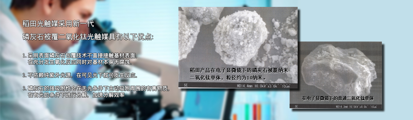 在認(rèn)識(shí)【光觸媒】之前,要先了解什么是【觸媒】。觸媒是日語,翻譯成中文叫催化劑。催化劑是能在化學(xué)反應(yīng)中加速反應(yīng)速率,而本身在反應(yīng)前后并不發(fā)生變化的物質(zhì)。光觸媒是一種以納米級(jí)二氧化鈦為代表的具有光催化功能的光半導(dǎo)體材料的總稱。它涂布于基材表面,在光線的作用下,產(chǎn)生強(qiáng)烈催化降解功能:能有效地降解空氣中有毒有害氣體;能有效殺滅多種細(xì)菌,并能將細(xì)菌或真菌釋放出的毒素分解及無害化處理;同時(shí)還具備除臭、抗污、凈化空氣等功能。 稻田光觸媒采用【磷灰石被覆納米二氧化鈦分子結(jié)構(gòu)】,具有吸附、分解、去除、無毒化的特質(zhì)。表面磷灰石包覆技術(shù)不直接接觸基材表面,在充分發(fā)生氧化反應(yīng)的同時(shí)對(duì)基材本身無腐蝕。其中的【磷灰石】成分,具有強(qiáng)大的吸附能力,可以隨時(shí)吸附空氣中的異味源、細(xì)菌、病毒等有害物質(zhì),再交由【二氧化鈦】在光源下進(jìn)行分解反應(yīng),因此能夠24小時(shí)吸附、分解